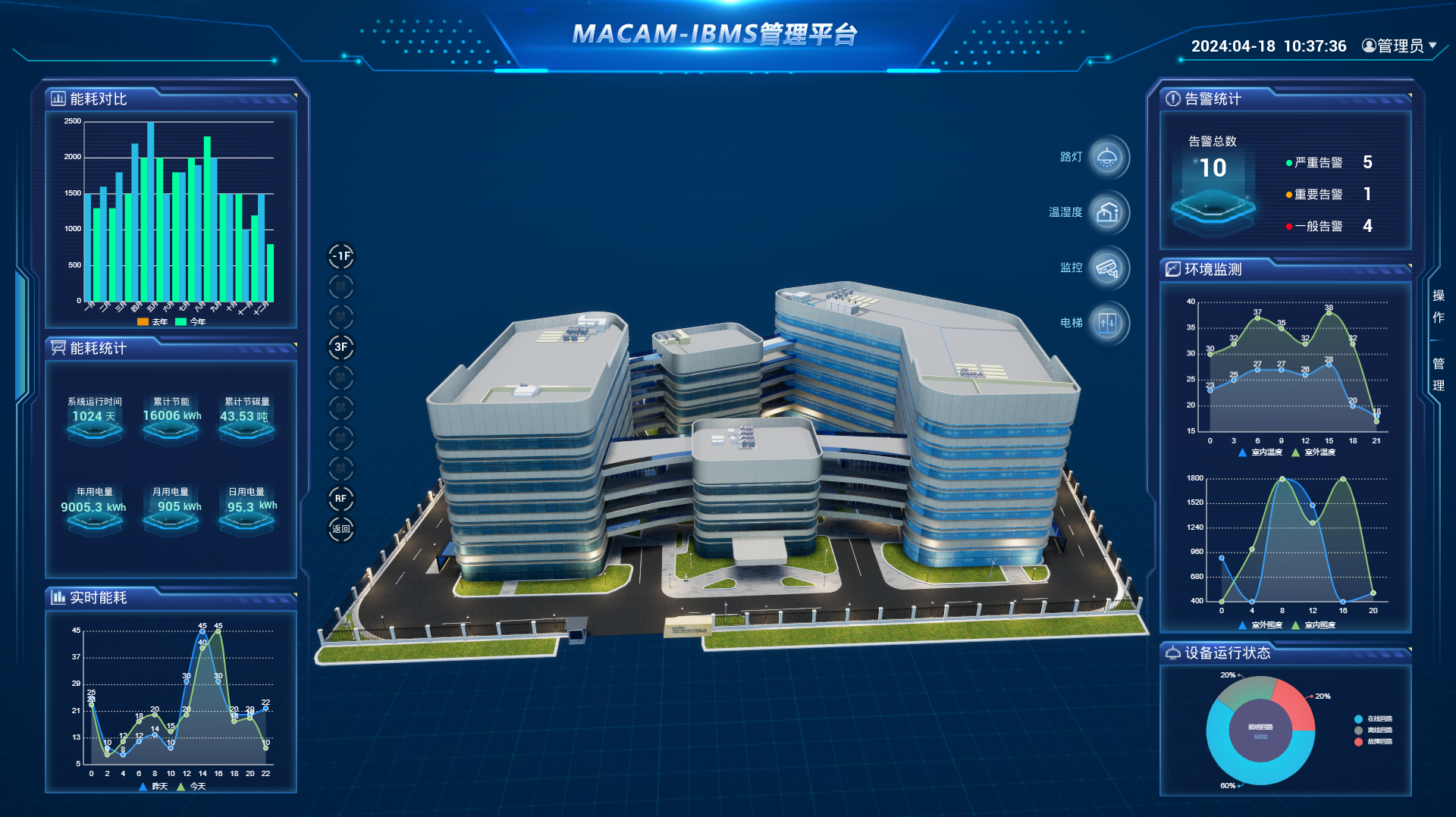 我司自主知识产权的“天涯明月”物联网云平台和MACAM-IBMS智能化系统集成管理软件。可便捷的部署在云端和本地。丰富的界面呈现方式。支持PC端的2D、3D界面风格浏览控制管理,PAD端,手机APP端控制管理功能。在常规的人体感应控制灯光;光照度控制灯光;远程控制灯光;定时控制灯光等照明控制管理功能基础上,通过开放性的第三方子系统数据接入功能,实现照明与视频监控、安防的联动;与窗帘控制的联动;与会议系统,访客系统的联动等联动控制功能。