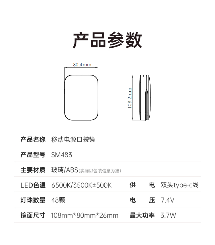 产品名称(中文):智能便携充电宝化妆镜
