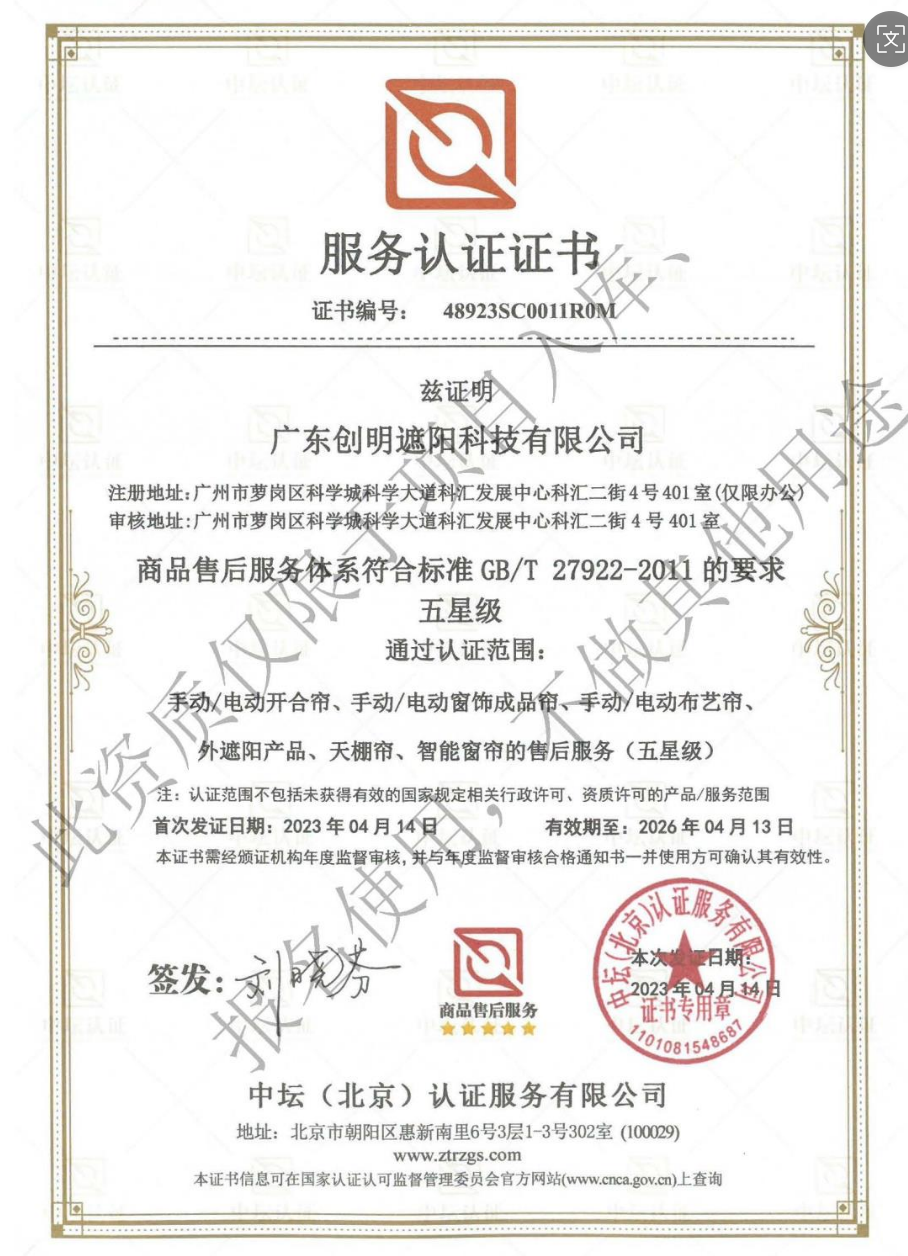 申报单位名称(中文):广东创明遮阳科技有限公司