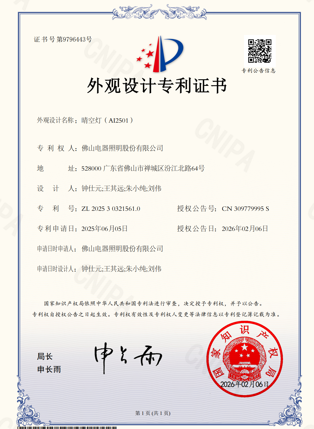 外观专利:晴空灯(AI2501)(专利号:ZL202530321561.0)