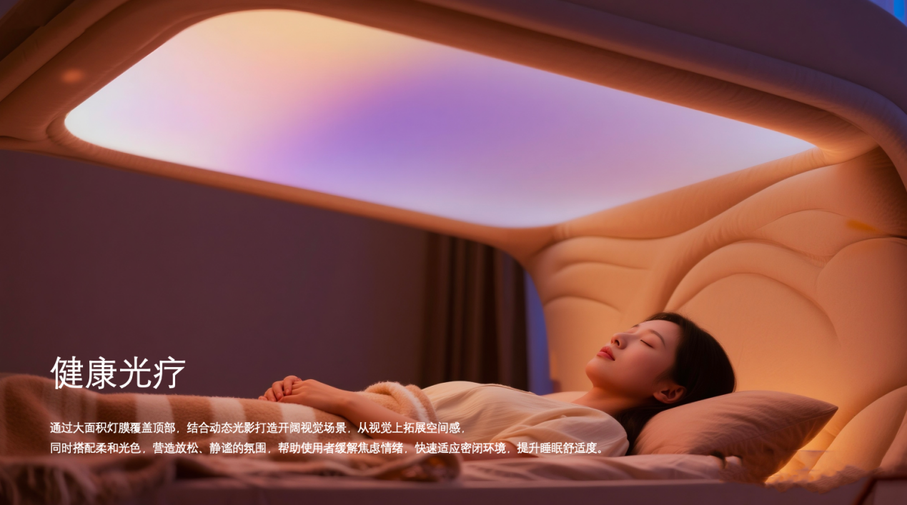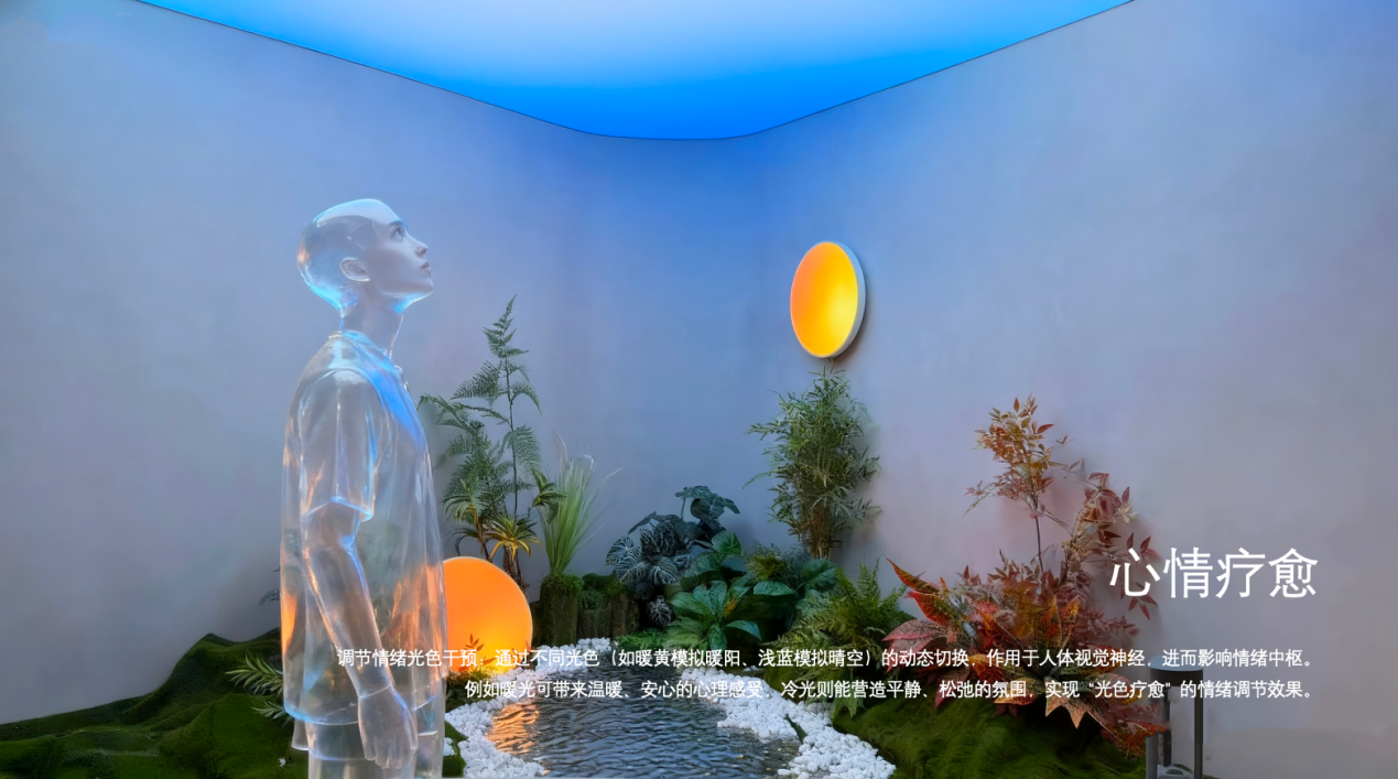 自然节律模拟与疗愈功能:模拟自然光线变化,调节人体节律;提供“海边日落”等疗愈场景,契合现代消费者对健康与情绪价值的追求。