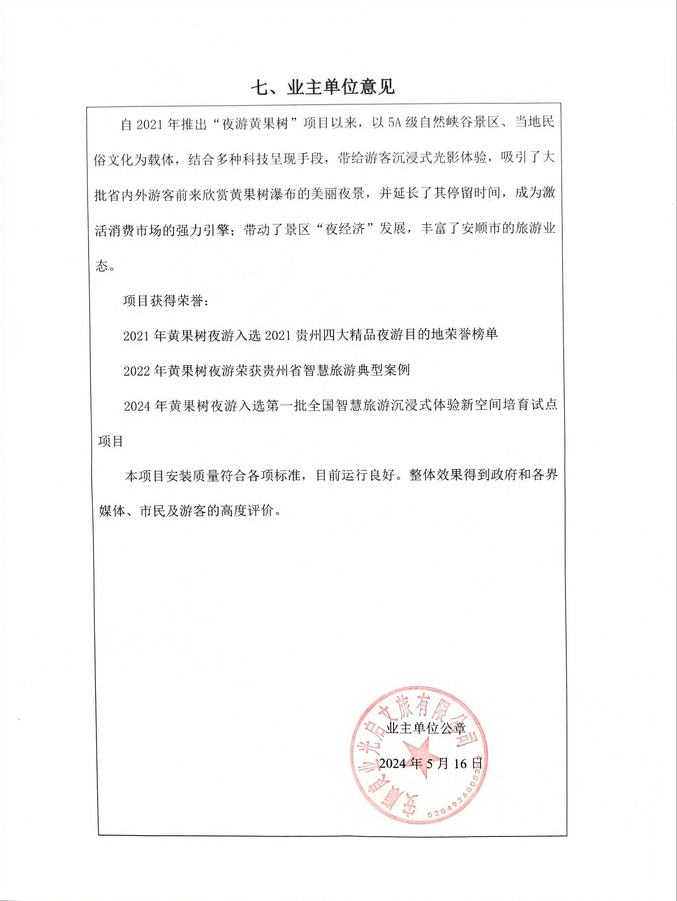 安顺良业光启文旅有限公司成立于2020年5月,通过建设“夜游黄果树”项目,以黄果树大瀑布为核心,融合布依族民俗文化,借助舞美、灯光、音响、投影、雾森等多种现代化科技手段感受沉浸式夜游体验。以“现代技术+旅游”融合发展,提升“黄果树夜游”品质,实现景区优化升级,打造全域旅游体系的“夜间经济”,完善黄果树全域旅游新业态。