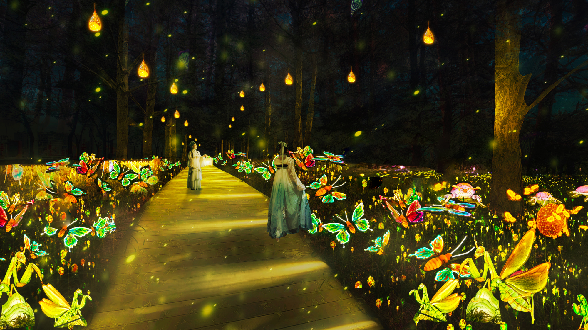 创业大道是进入沙圪堵的“第一印象”,通过打造十余公里的灯光通廊,灯光的色调搭配明快鲜艳,施工注重细节,营造出喜庆热烈的迎宾氛围;尊重水上公园的自然生态景观,在园内设置多个打卡节点,打造仿真动感虫谷区,装饰民俗文化区,在赏灯的同时,体验和了解当地文化内涵;在城市广场上演灯光秀与灯光美陈,吸引大众参与互动,促进周边业态夜间的消费活动;精心布置街边节点,随处可见这浓浓的过年气氛。