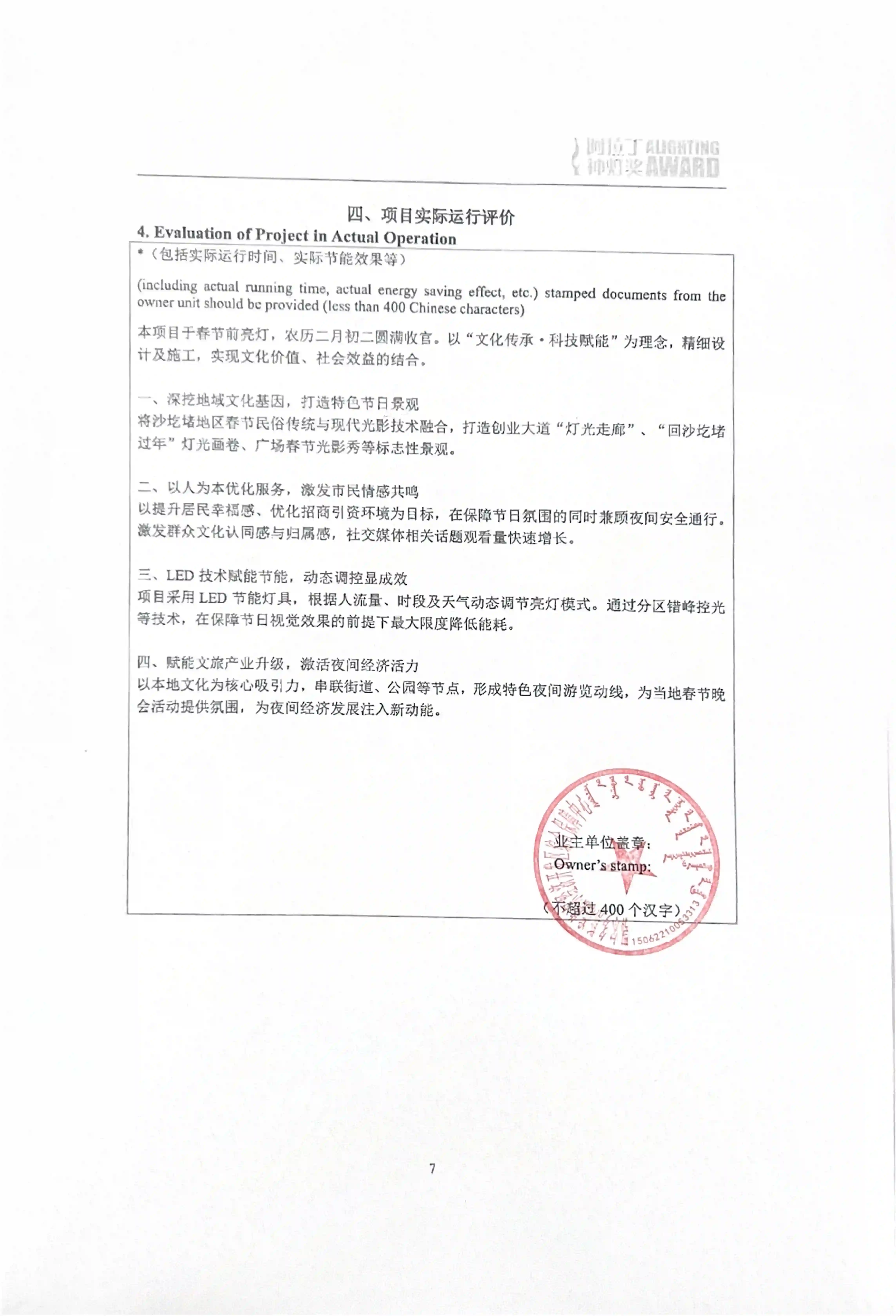申报项目名称(英文) :2025 Spring Festival & Lantern Festival Lighting Project, Shagedu Town, Zhungeer Economic Development Zone