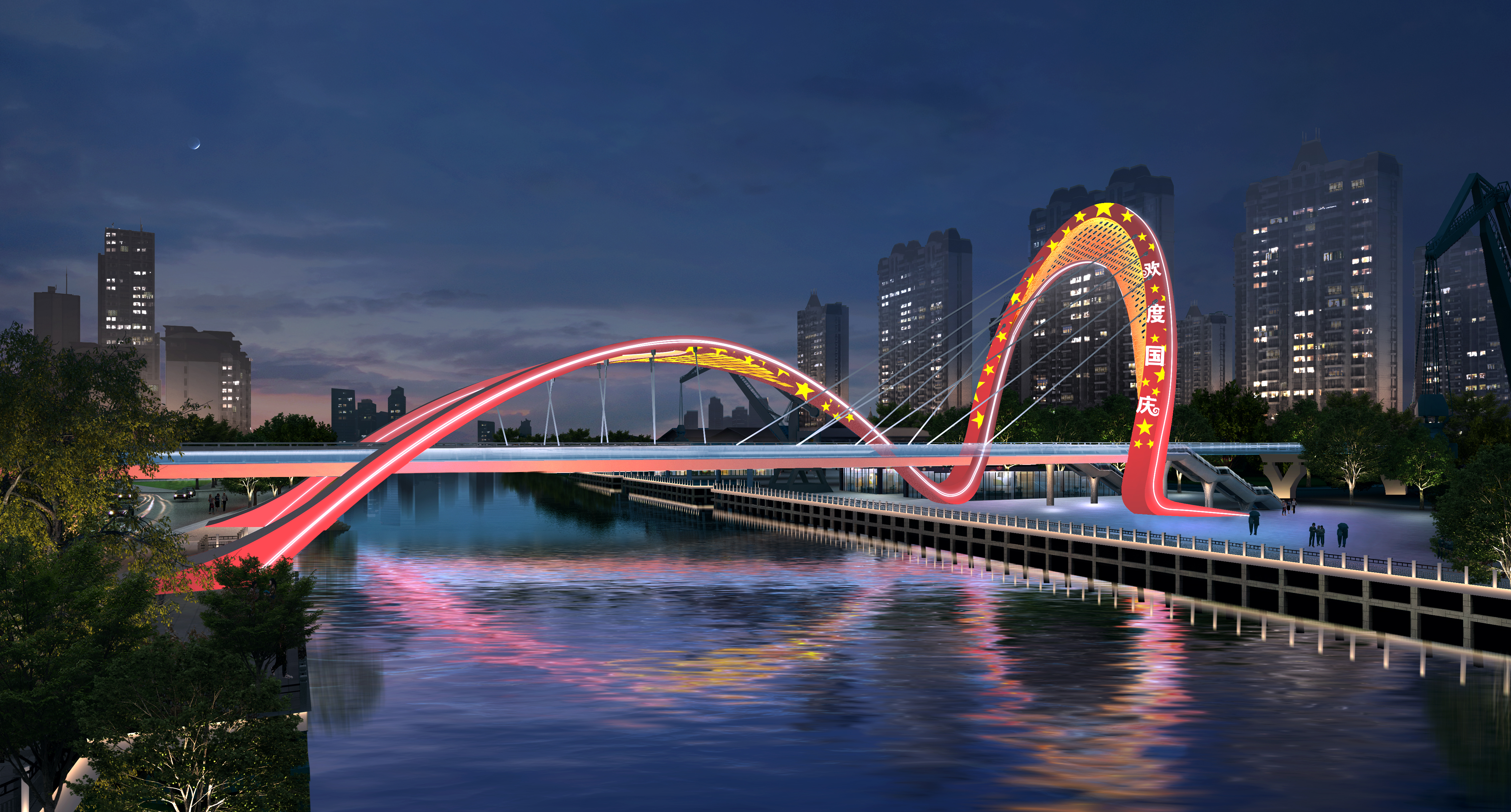 夜晚,通过桥梁灯光艺术,化身最美的城市“流动的音符”,飘逸灵动。