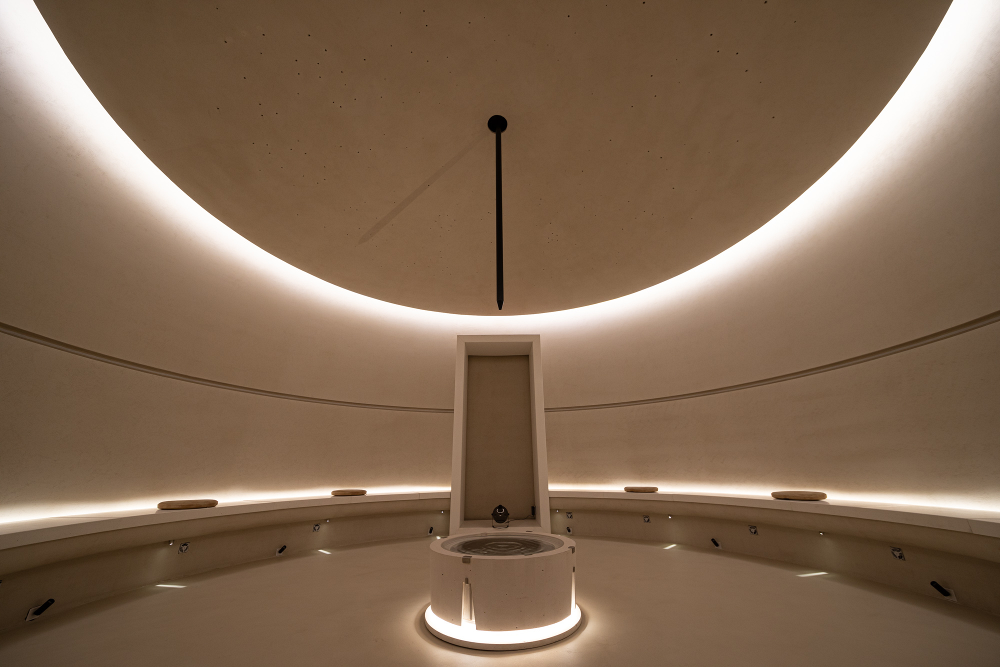 终章以象征性艺术装置升华主题,环形展区内日晷镌刻光阴流转,水滴折射生命韵律,粒子灯展现能量波动,丁达尔效应构建光的物质形态。水滴滴落泛起的涟漪,投射在圆坛上空生成个性化光纹,隐喻人类既是自然之光的承接者,亦是人文之光的创造者。离场时赠予一束健康的光,让观展者感悟设计者的初心:珍惜光,理解光,敬畏光。