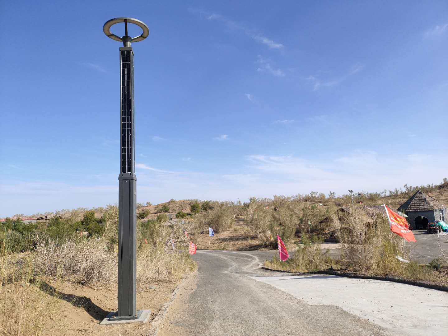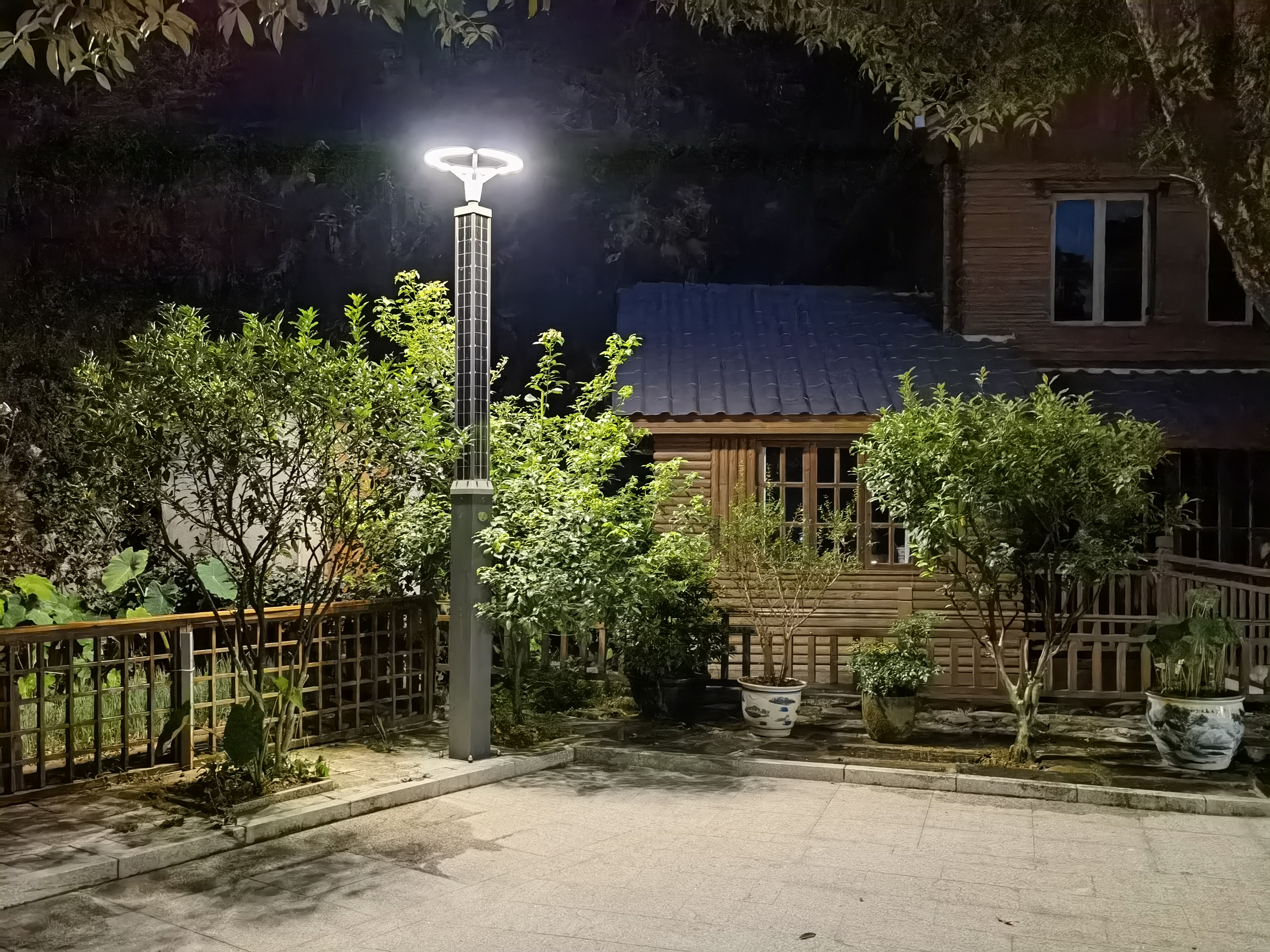 3、应用场景:由于独特的造型结构设计以及纯光伏路灯,在接线不便的场景、以及城市、农村的公园、别墅、城市广场等场景均能有效使用,应用场景广泛。