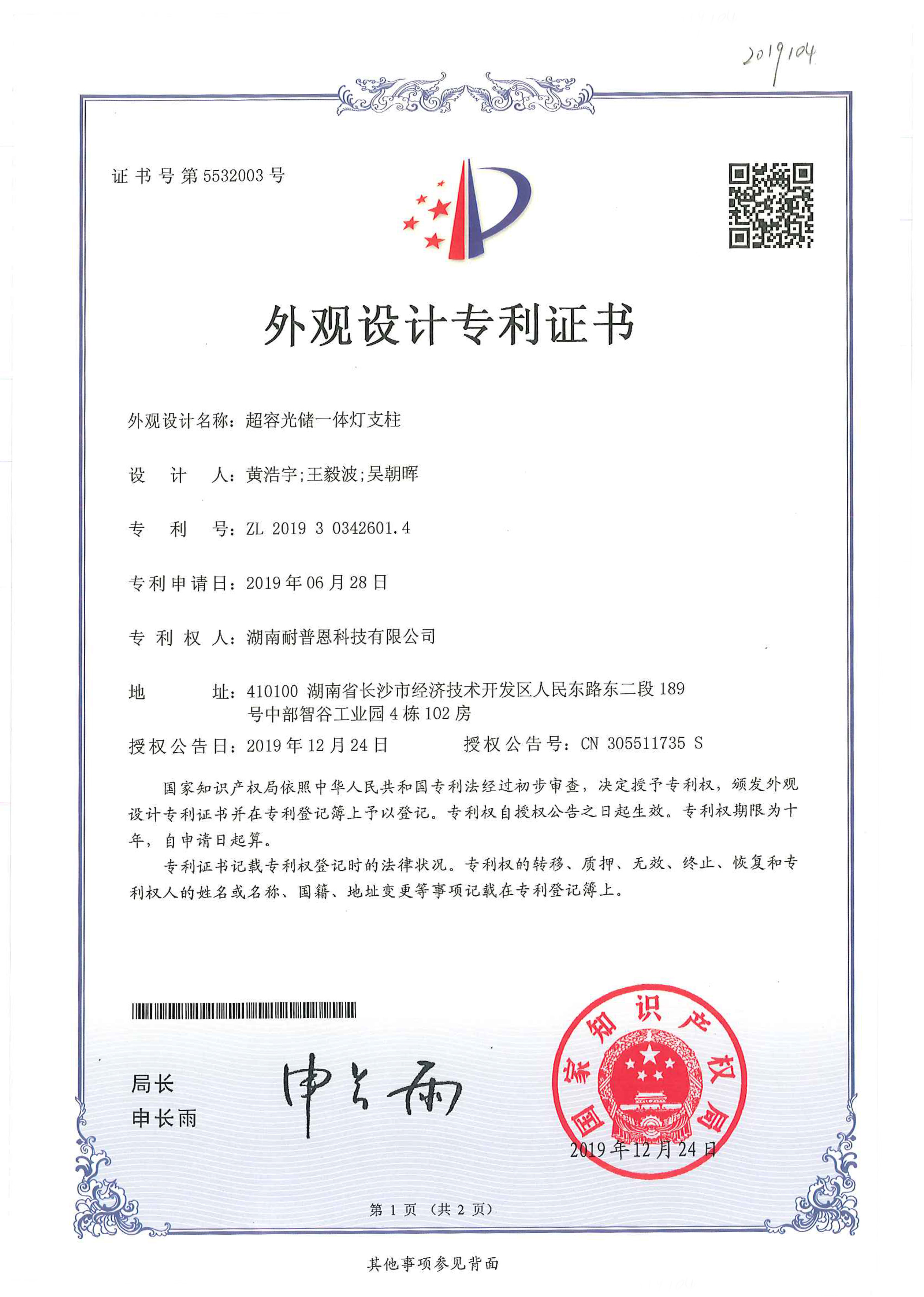 2、自有知识产权:超容光储一体灯已申请国内外专利10余项(包括PCT、欧盟、加拿大、美国)。