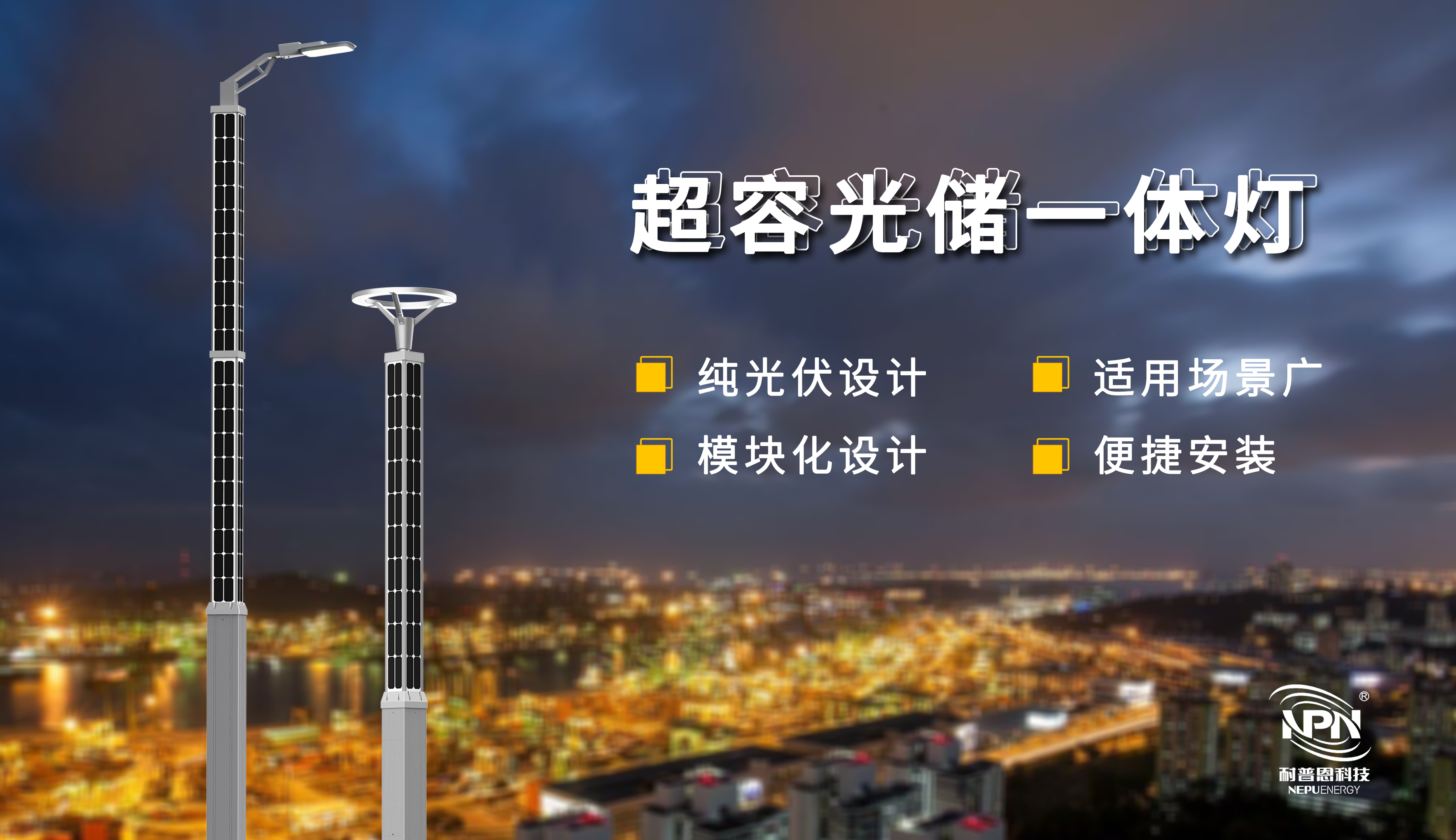 耐普恩科技超容光储一体灯是一款以公司清洁能源储能产品为依托,在光储充场景应用下研发出来的清洁能源光伏路灯,在同类光伏路灯市场中独具特色: