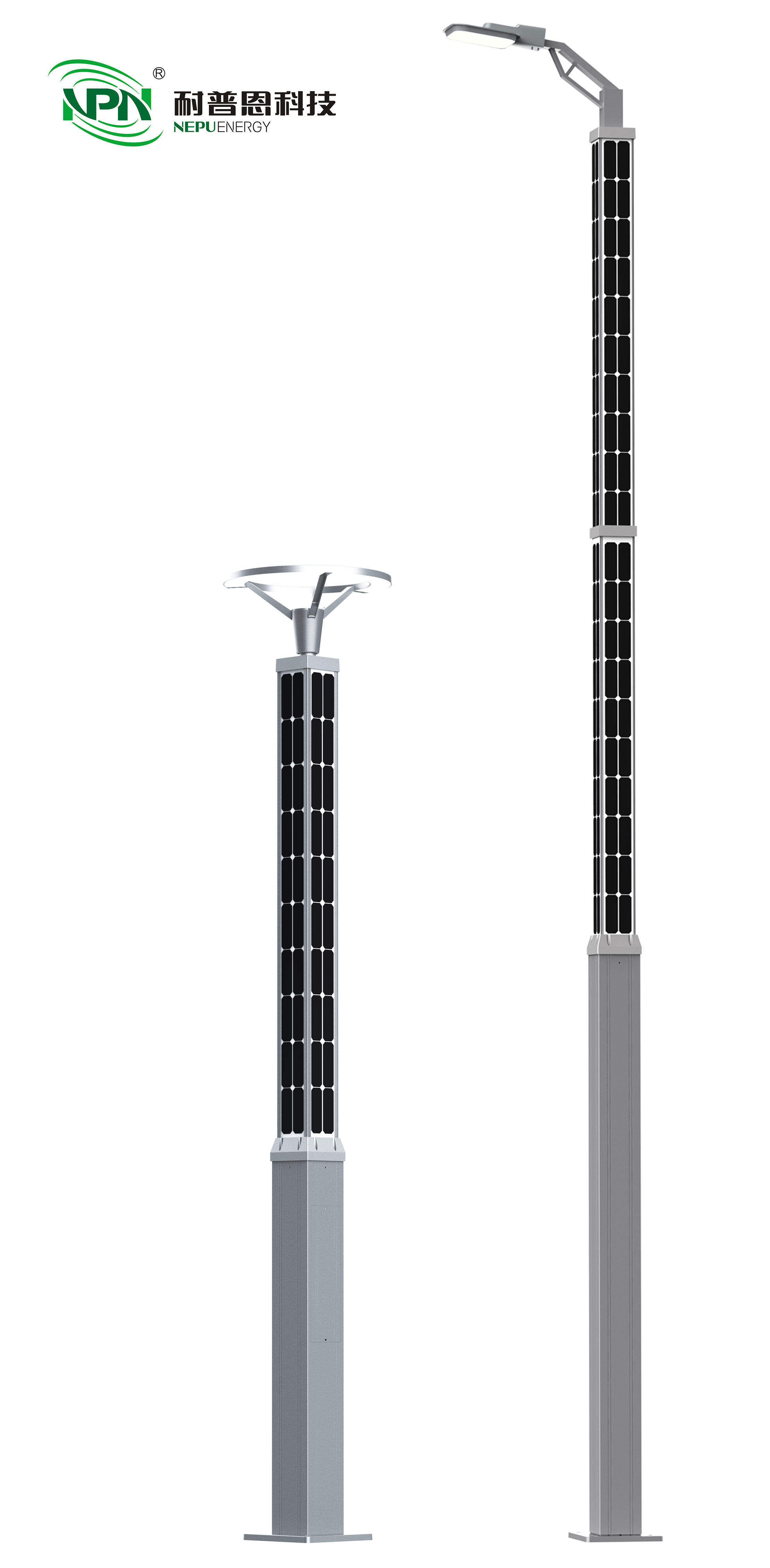 1、造型:目前,国内外光伏路灯的造型均以光伏板置顶的设计形式为主,尤其是景观灯,耐普恩科技创新推出的超容光储一体灯,光伏板集成于灯杆四面,造型方圆有度,简约时尚。