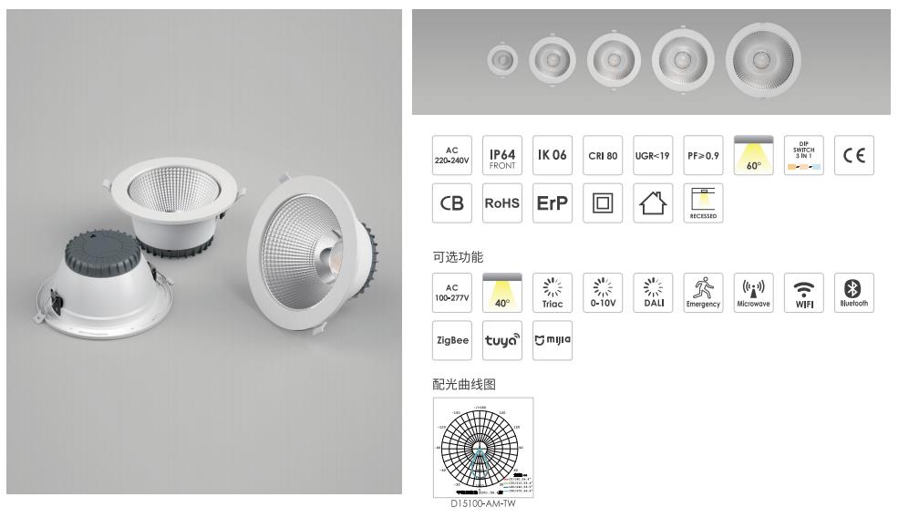 申报项目名称(中文):宜美照明探路者筒灯D15150-A