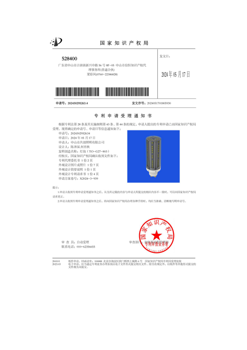 申报单位名称(中文):中山市共创照明有限公司