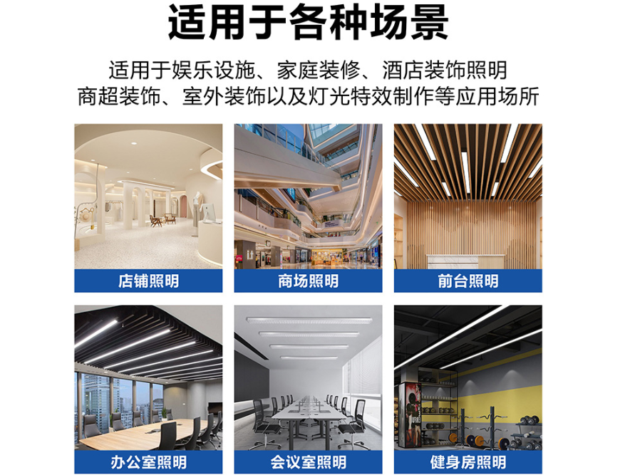 适用于各种场景——适用于娱乐设施、家庭装修、酒店装饰照明商超装饰、室外装饰以及灯光特效制作等应用场所