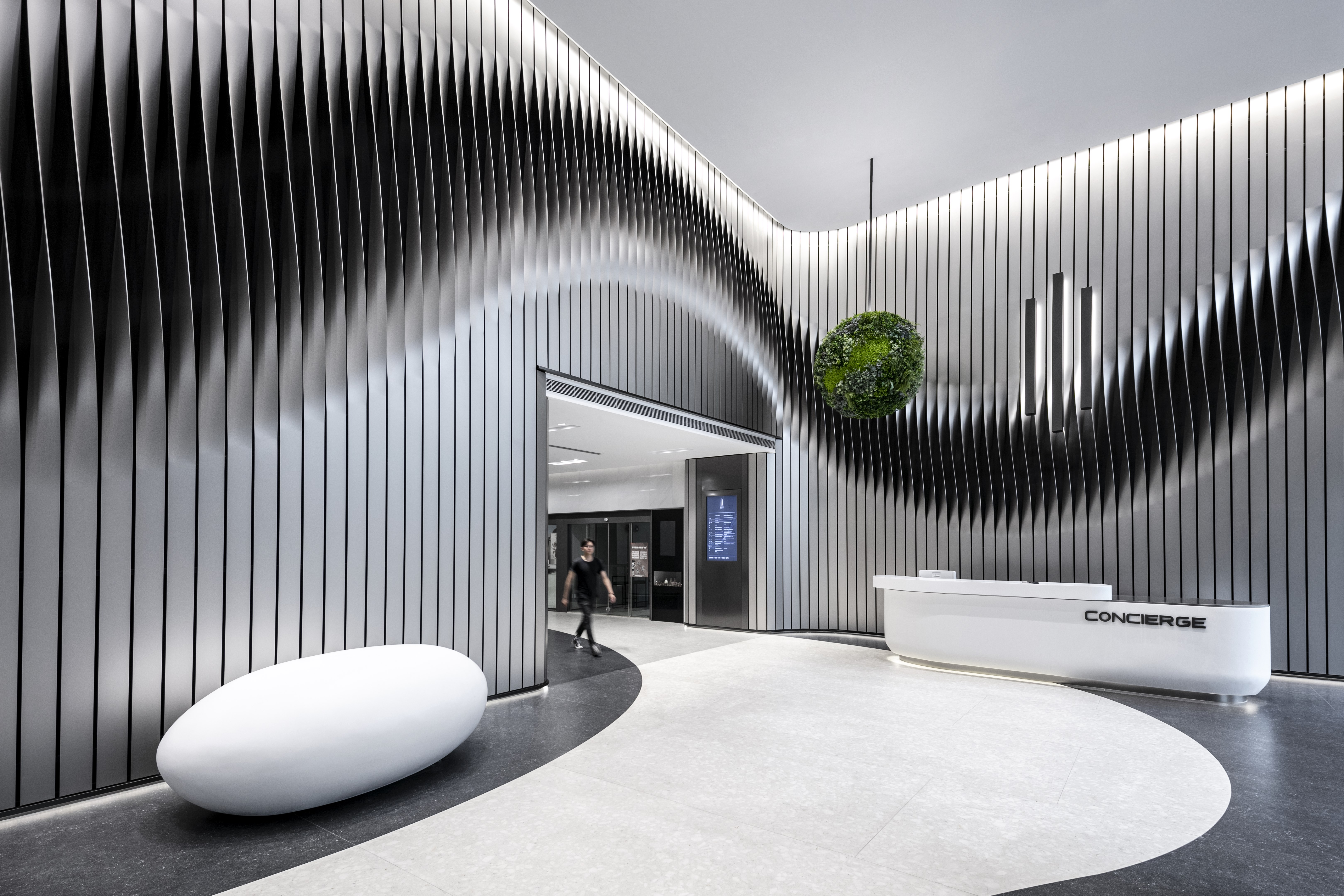 2. The site landscape follows the brand concept, combined with internal curve and ripple elements, the lighting is mainly linear light, and the indoor lighting mainly enhances the sense of rhythm and space of the lobby, creating a representative place identity and arrival experience.