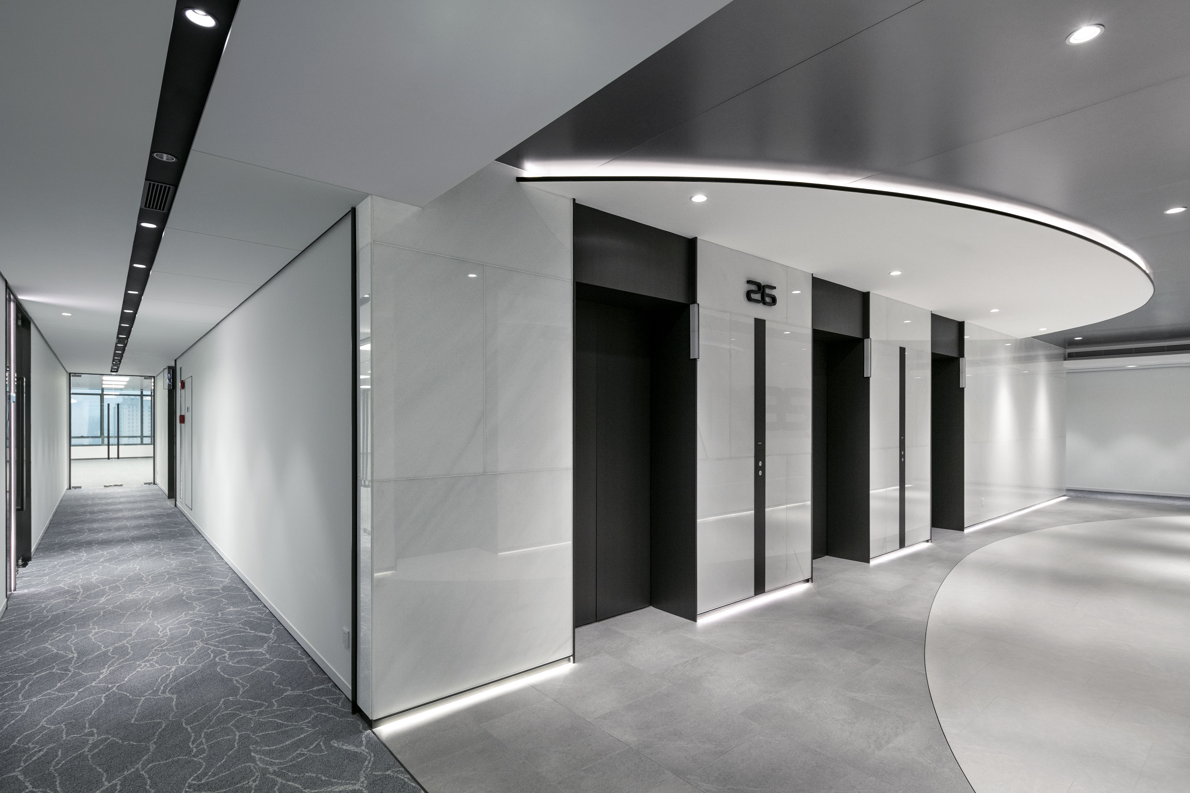 3. Lighting extends the marine design vocabulary to the public spaces on all floors, elevator halls, corridors and tenant spaces, highlighting the light architectural flow and avant-garde design concepts.