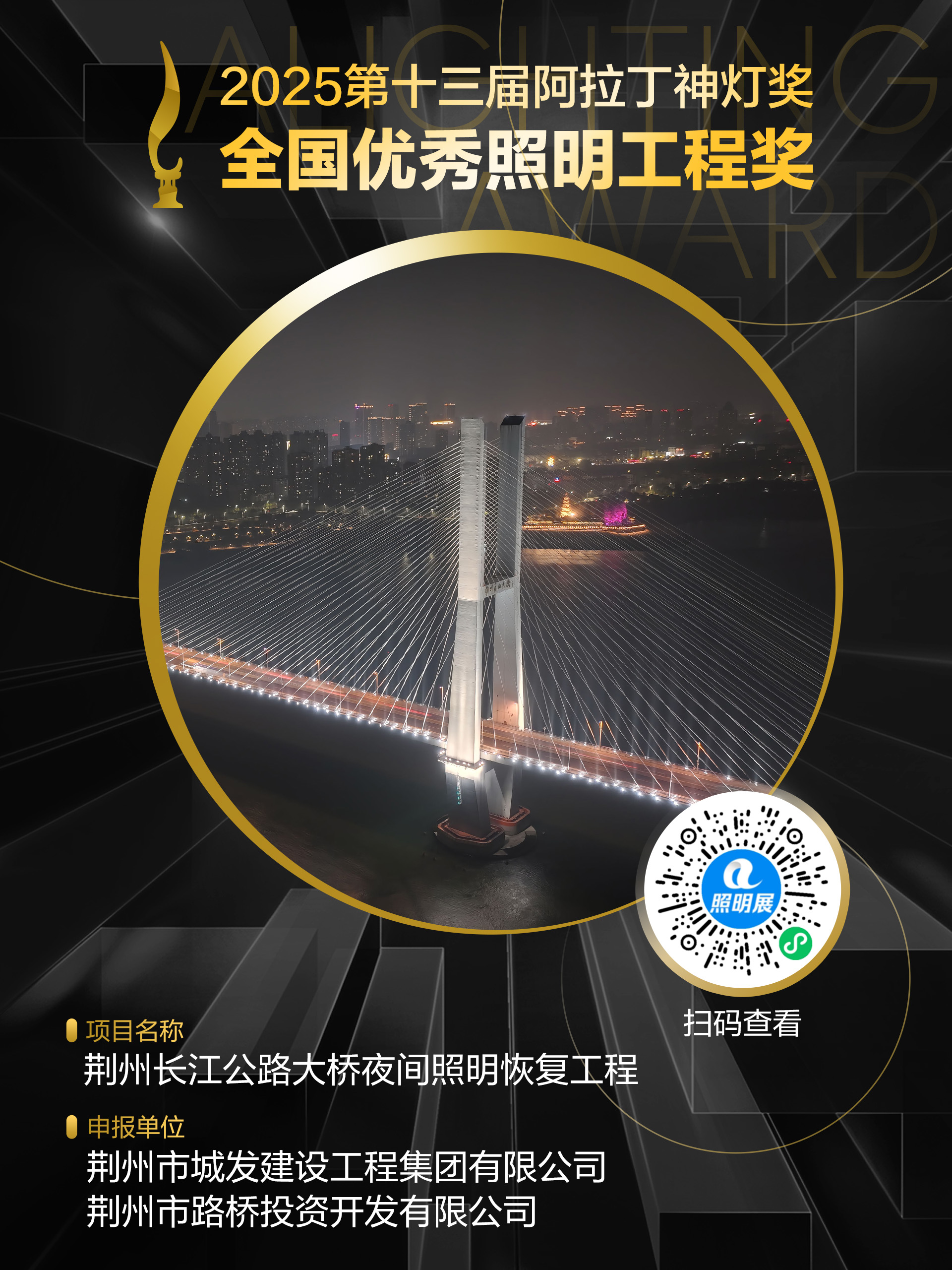 #2025第十三届阿拉丁神灯奖 全国优秀照明工程奖 获奖项目:荆州长江公路大桥夜间照明恢复工程