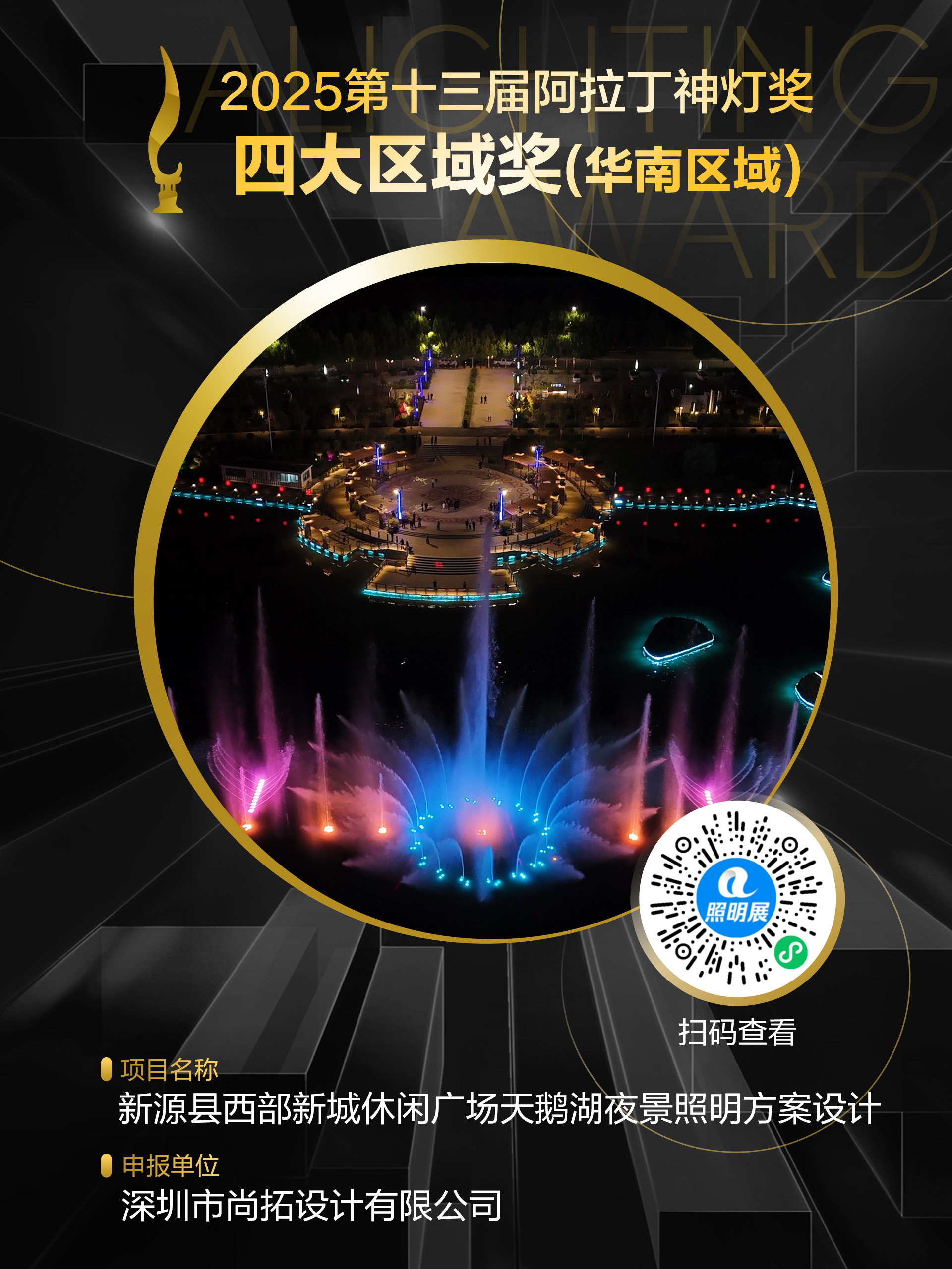 2025第十三届阿拉丁神灯奖 四大区域优秀奖 获奖项目:新源县西部新城休闲广场天鹅湖夜景照明方案设计